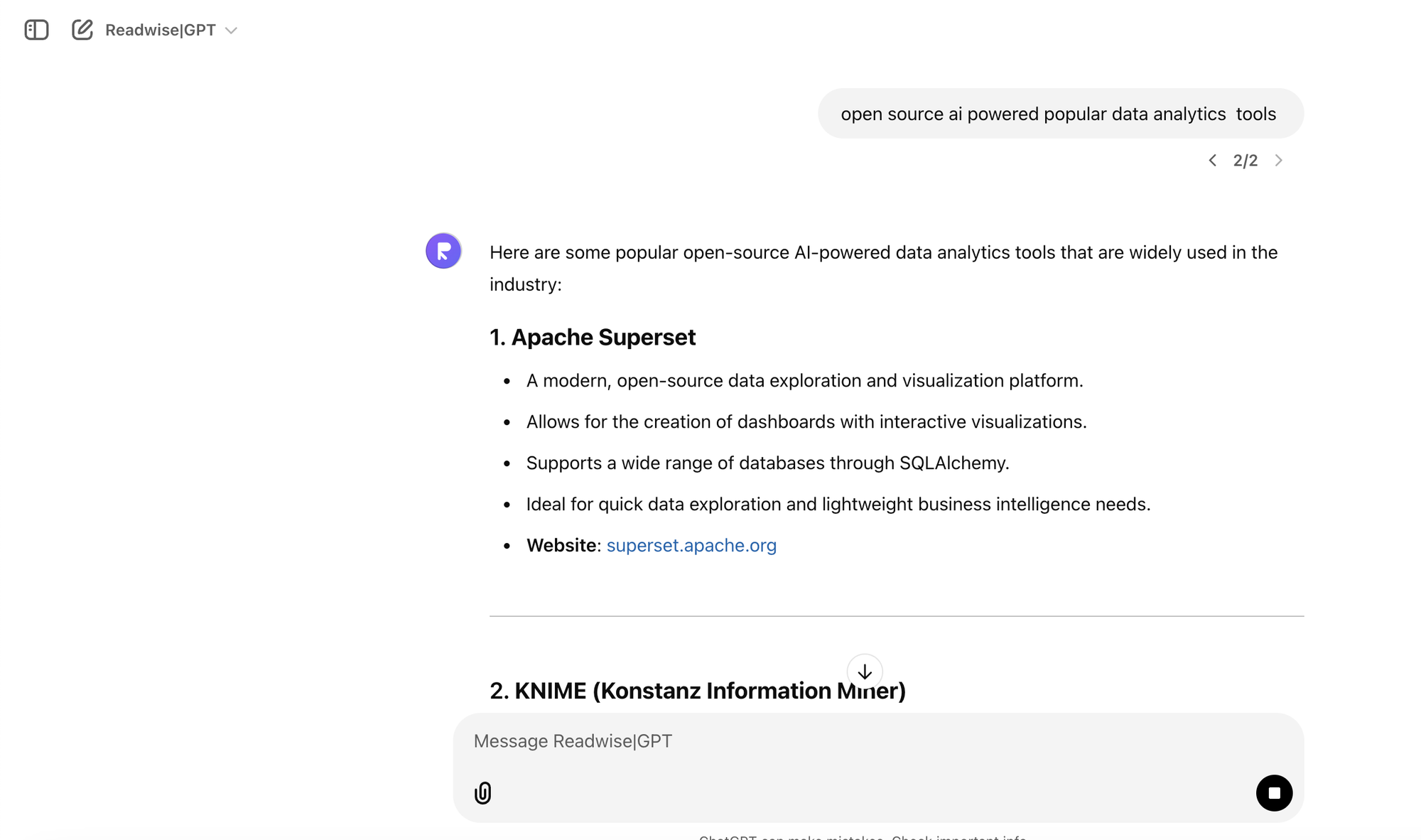 First, I asked for a list of AI-powered popular analytics tools.