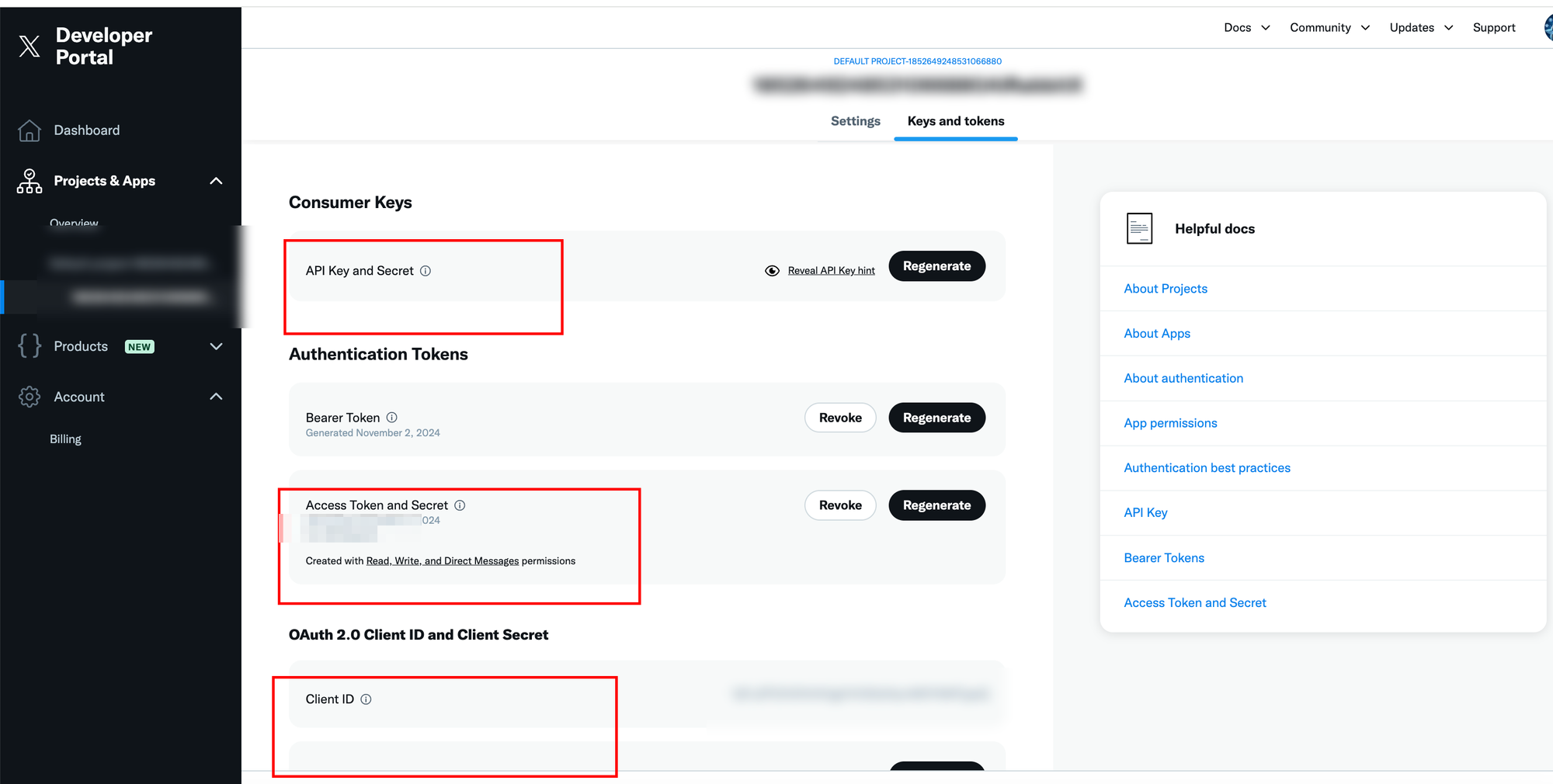 For detailed management of your projects and apps, visit the Twitter Developer Portal.