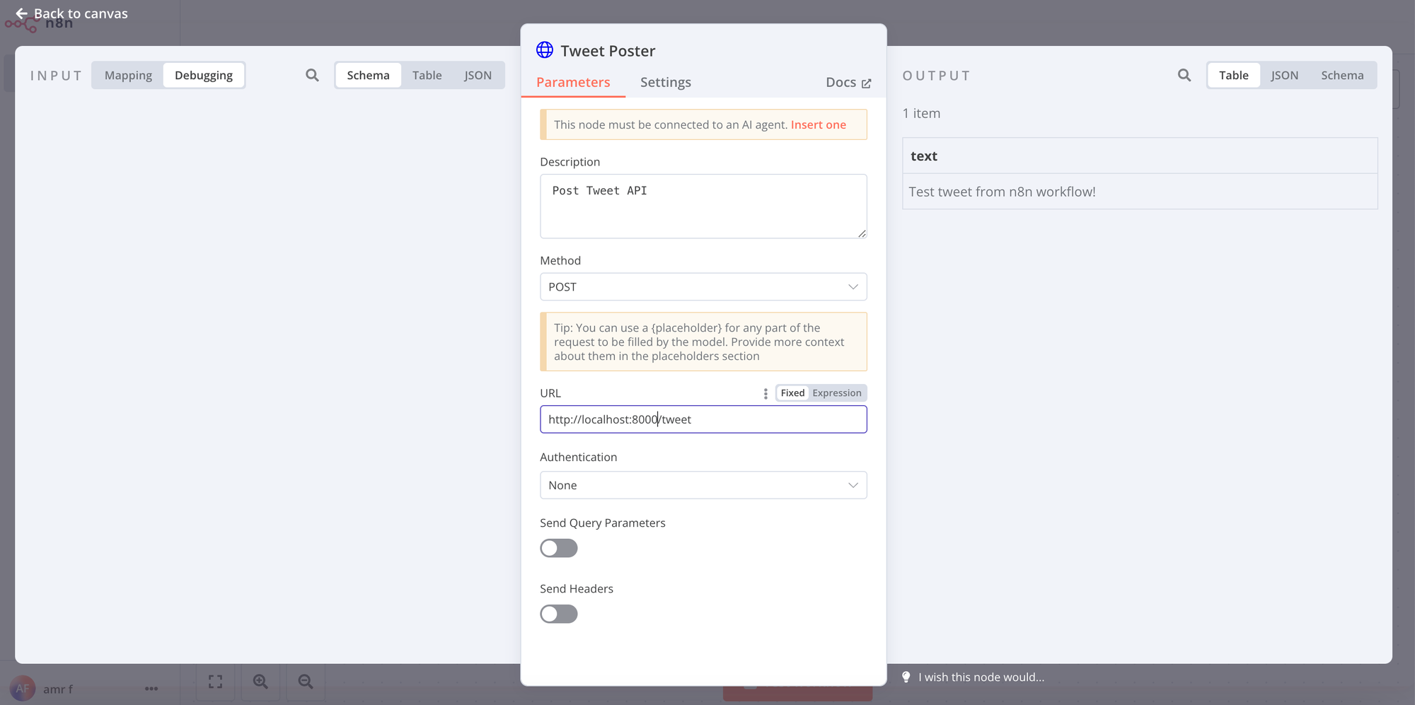 Integrating your FastAPI Tweet Posting API with n8n and an AI agent like OpenAI's GPT opens up powerful automation possibilities. By setting up a seamless workflow, you can generate and post engaging tweets automatically, enhancing your social media presence with minimal manual intervention.