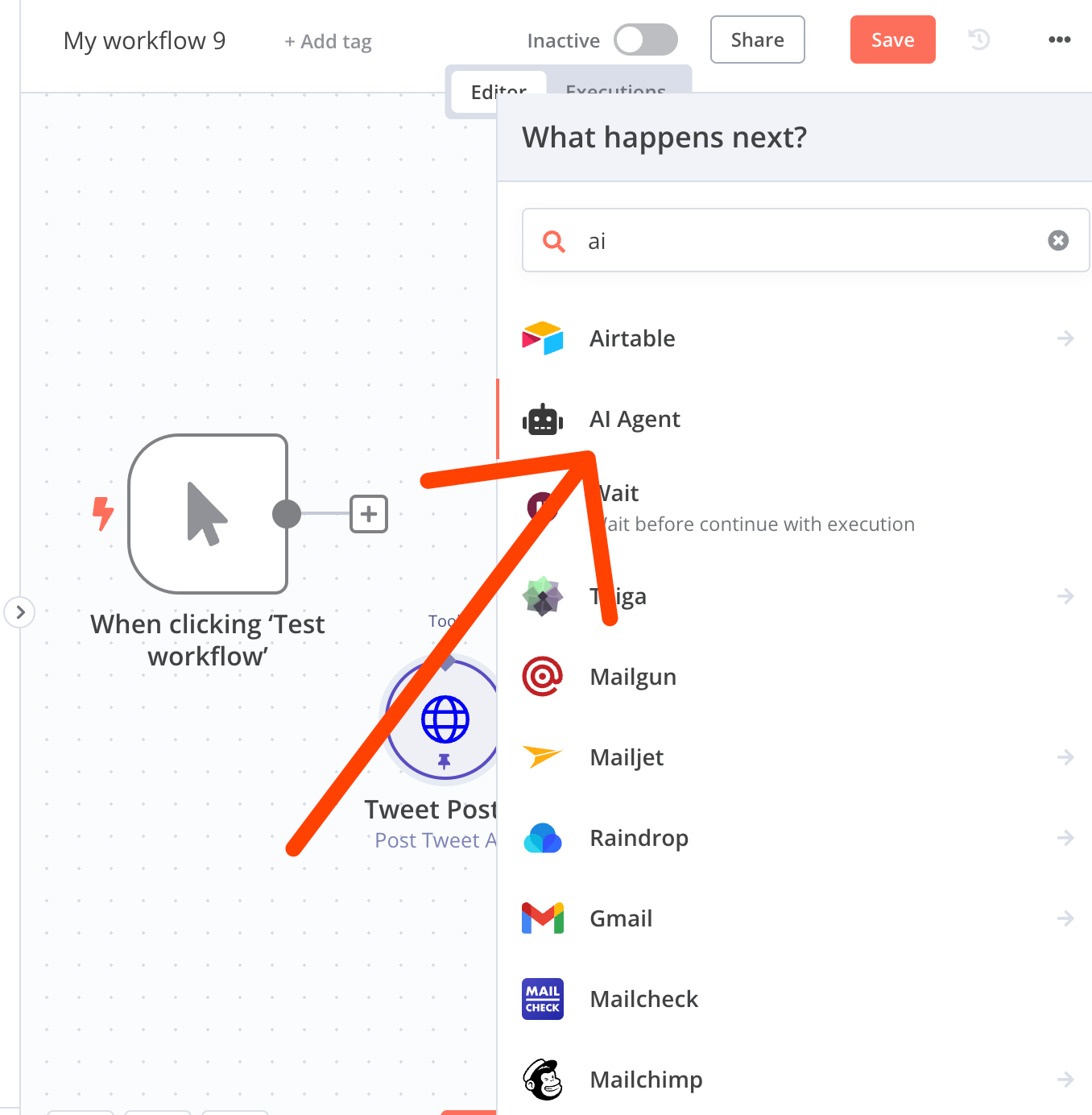 n8n is an extendable workflow automation tool that allows you to connect various services and automate tasks without extensive coding. It supports a wide range of integrations, making it ideal for connecting your Tweet Posting API with other services like AI agents.