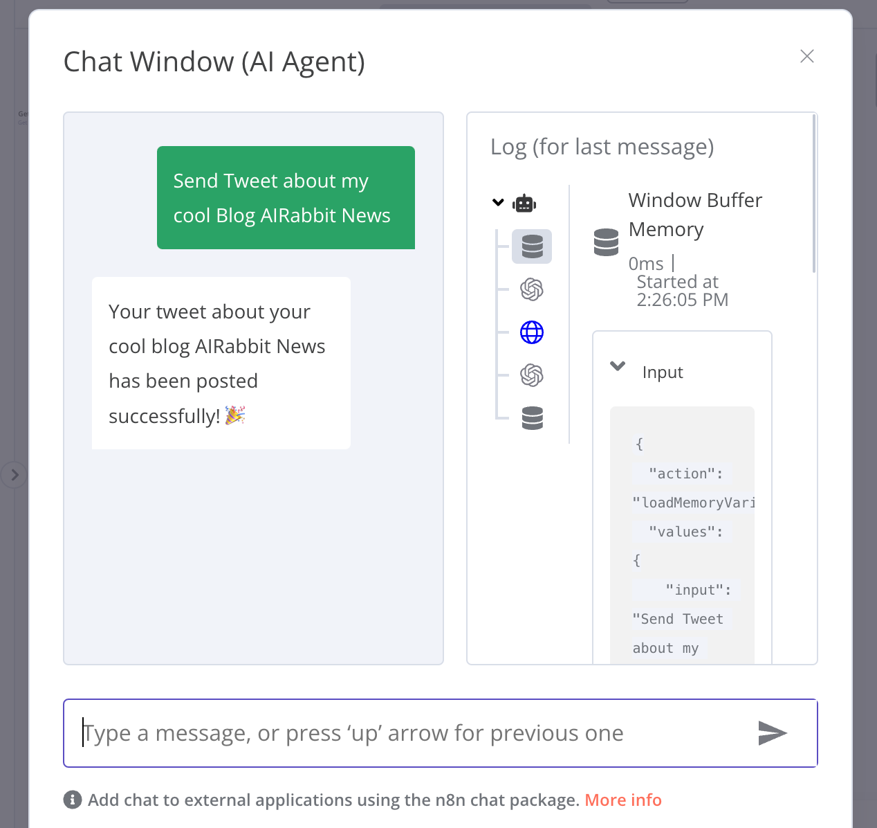 We can now test the workflow by chatting with OpenAI and asking it to create a Twitter account for any topic you choose.