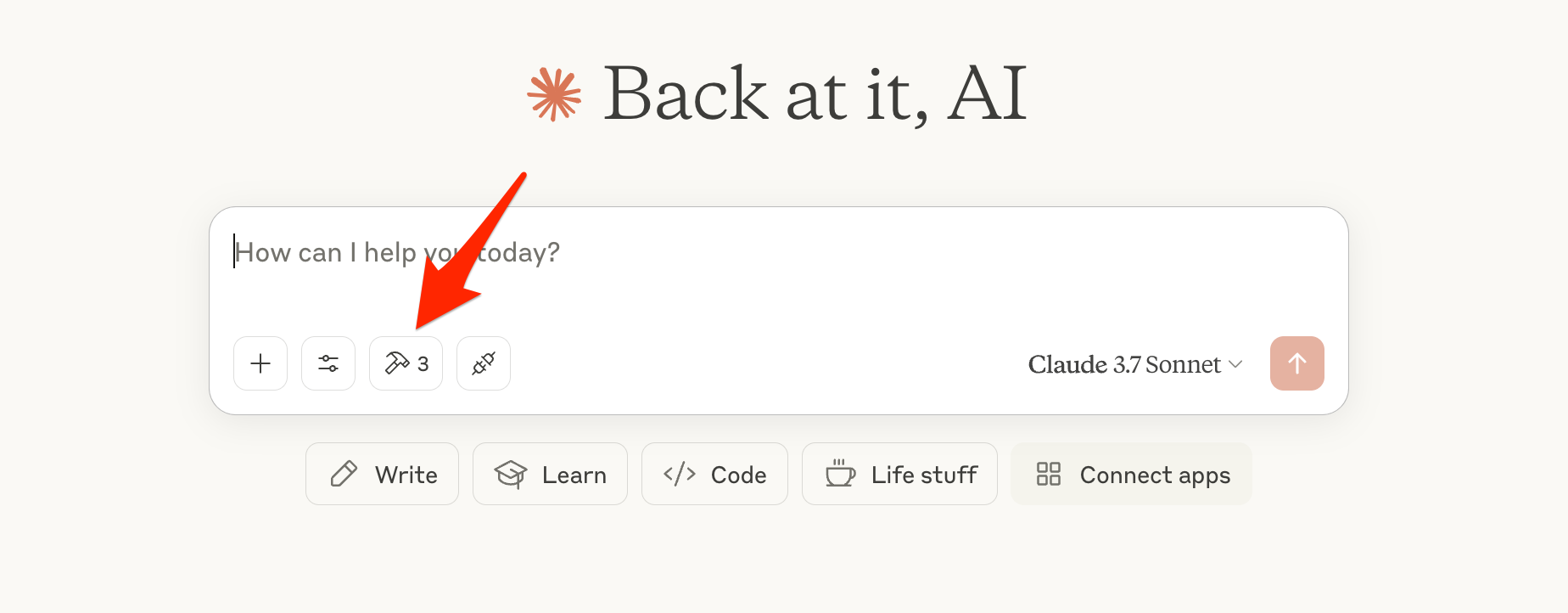 We can see which tools are currently available by clicking on the Tools button at the bottom of the chat window.