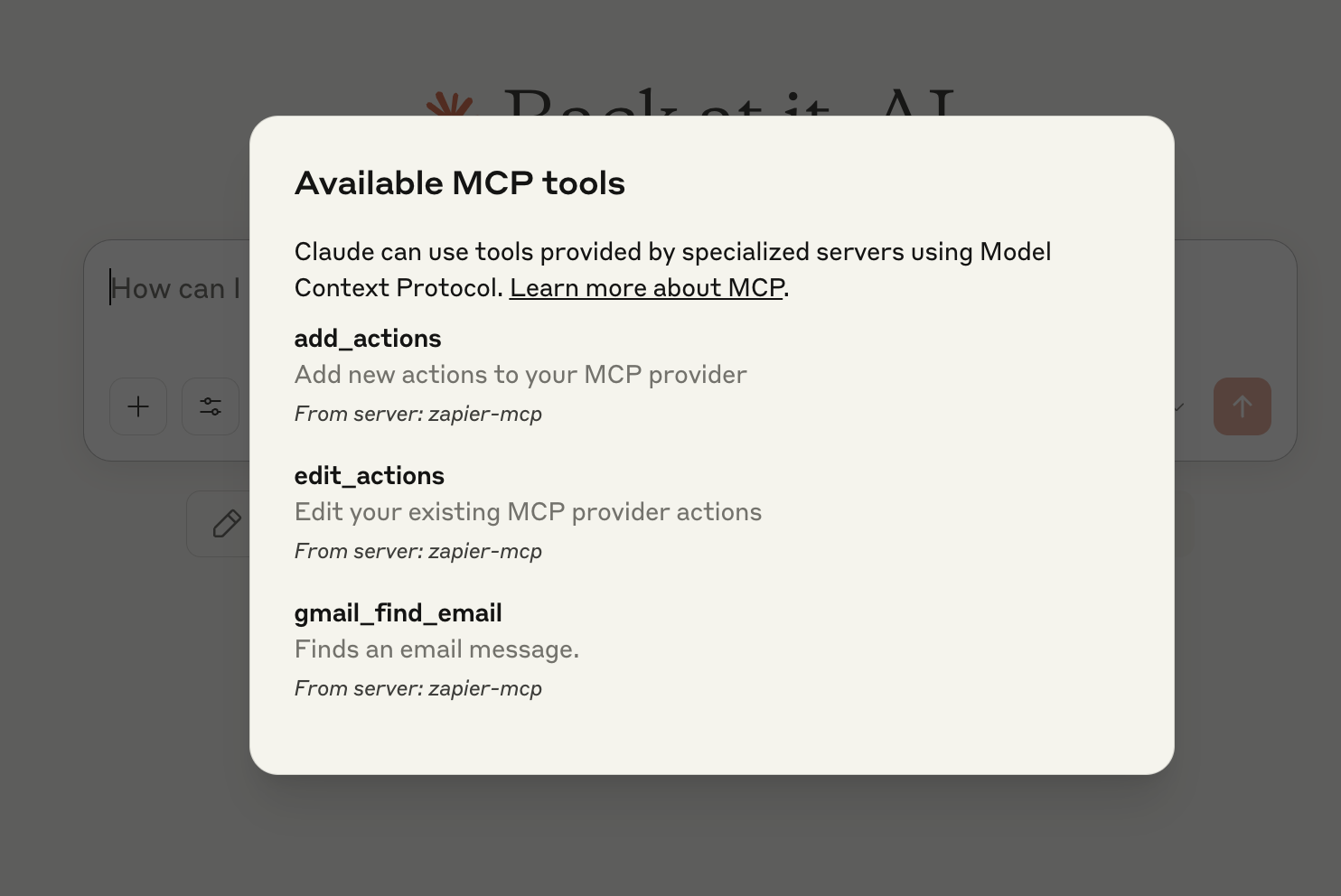 Now let’s check in Claude to see if it has access to the tools we configured in Zapier, like the findemail action.