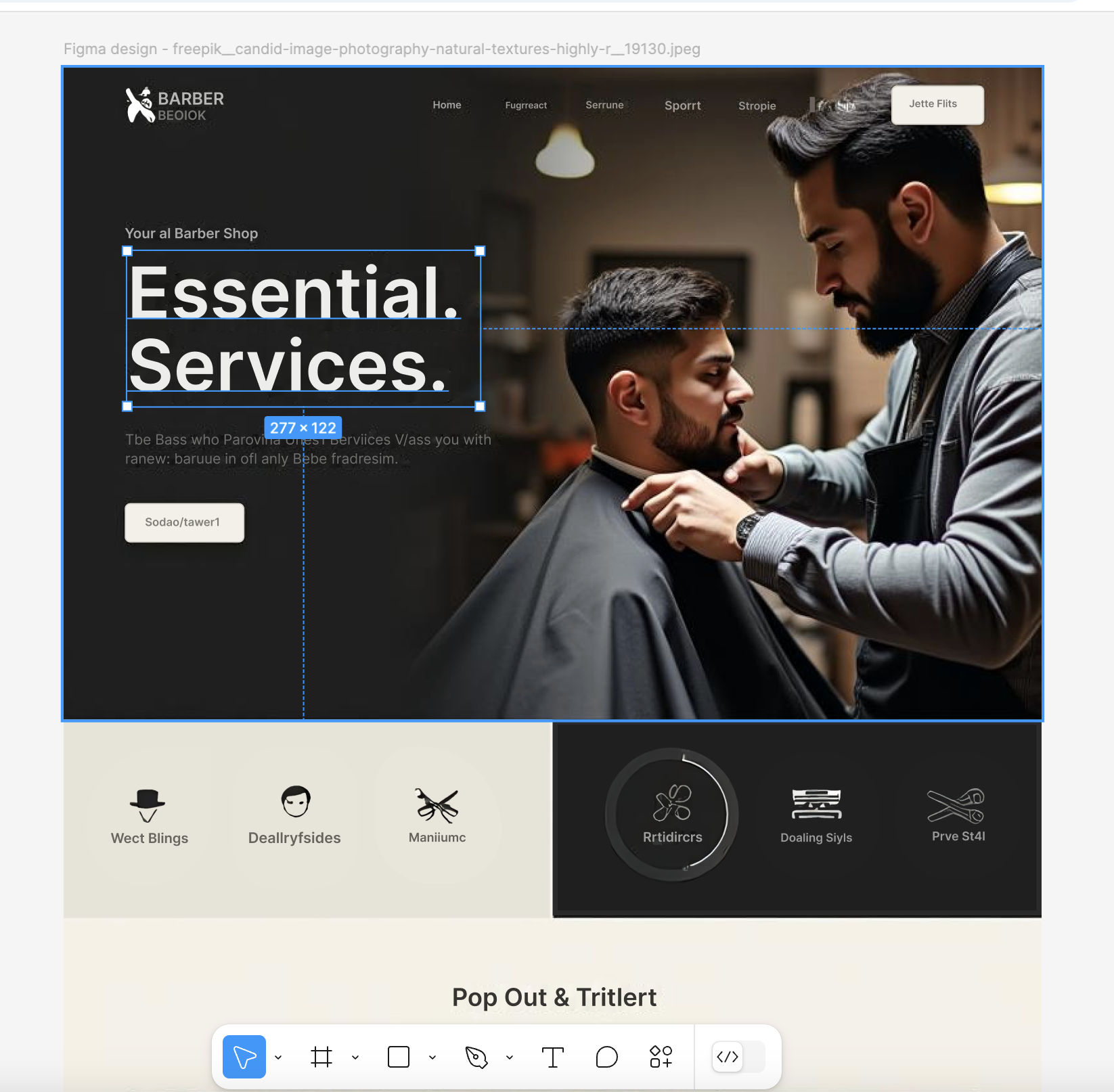 The AI now decomposes the generated image into editable Figma components, like text and buttons. Generated text is in many cases meaningless and should be replaced. And remember, the design serves as an inspiration for visually appealing landing page heroes and more, not a finished product.