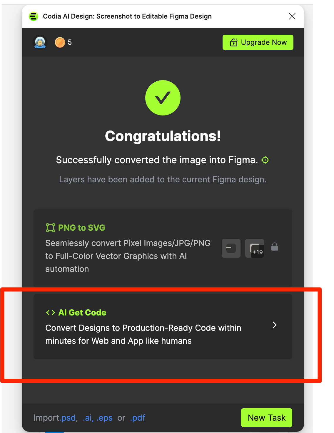 After a few seconds, you can convert your image into a Figma design by clicking AI Get code:
