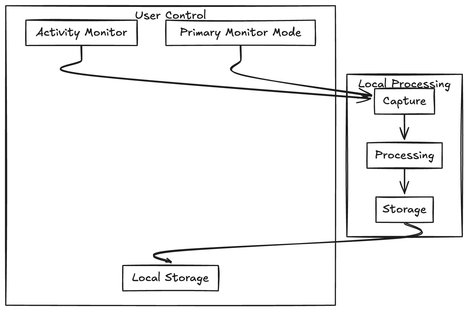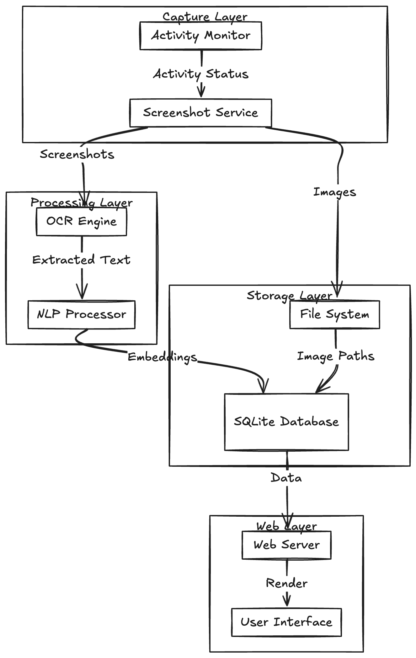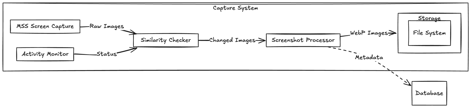- Capture Layer: Manages screenshot capturing and monitors user activity.