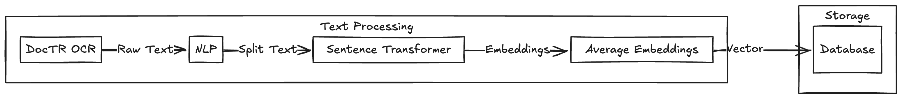 - Natural Language Processing (NLP): Processes the extracted text using Sentence Transformers to generate semantic embeddings.