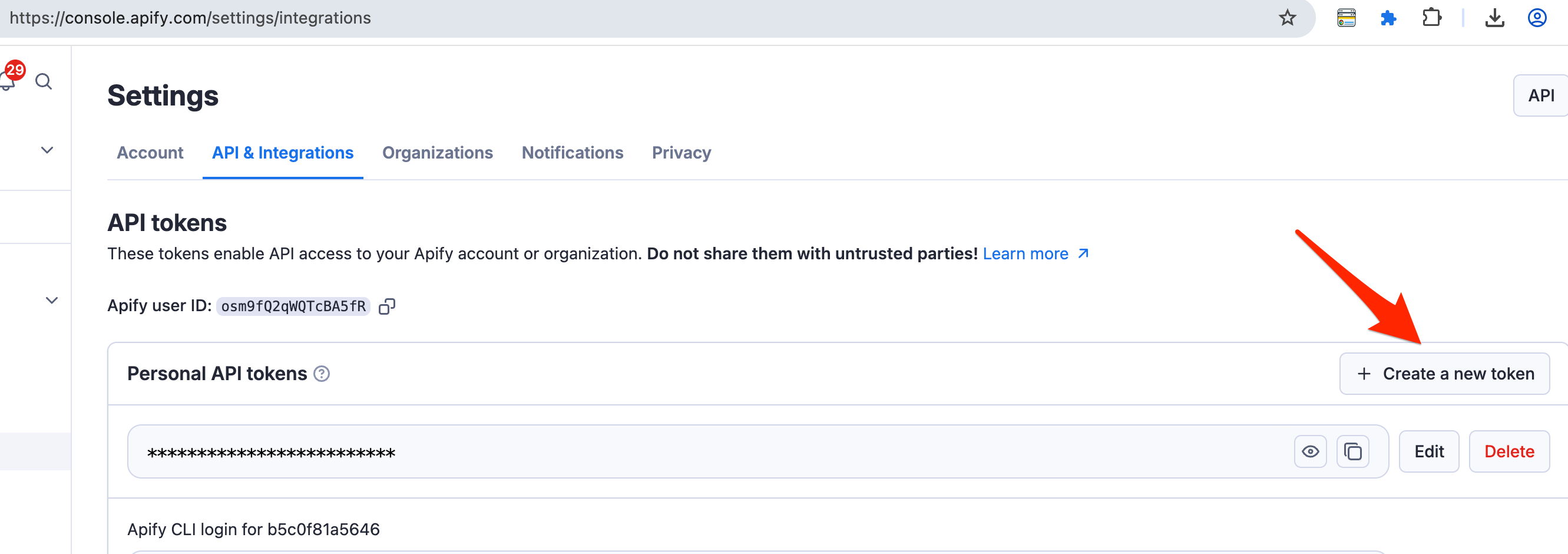 https://console.apify.com/settings/integrations