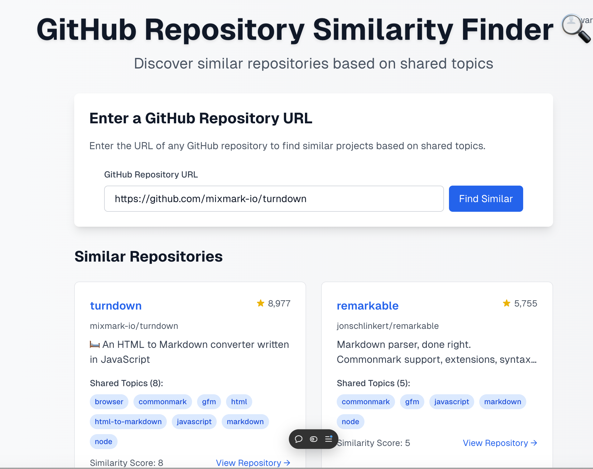 The concept is straightforward: we match repositories that share the same tags (topics). The more shared tags, the more similar the repositories are likely to be. It's a simple metric, but it cuts through the noise and focuses on how developers themselves categorize their projects.