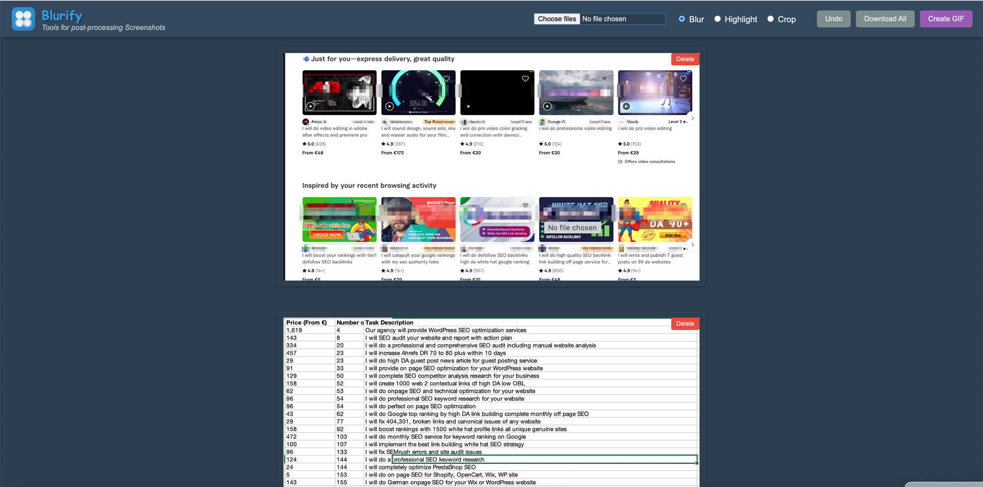 - Blur things if there are private things I don't want to share (like email addresses, API keys, etc.)