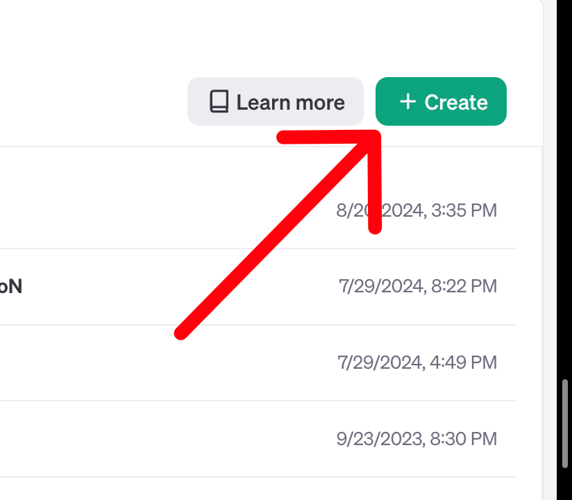 Step 1: Open the fine-tuning dashboard and hit "Create"