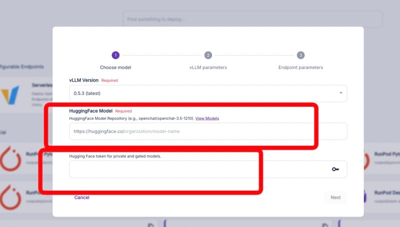 This step tells RunPod which model to deploy and how to access it.