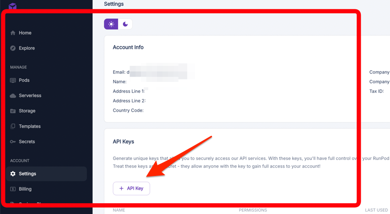 3. Create a RunPod API Key