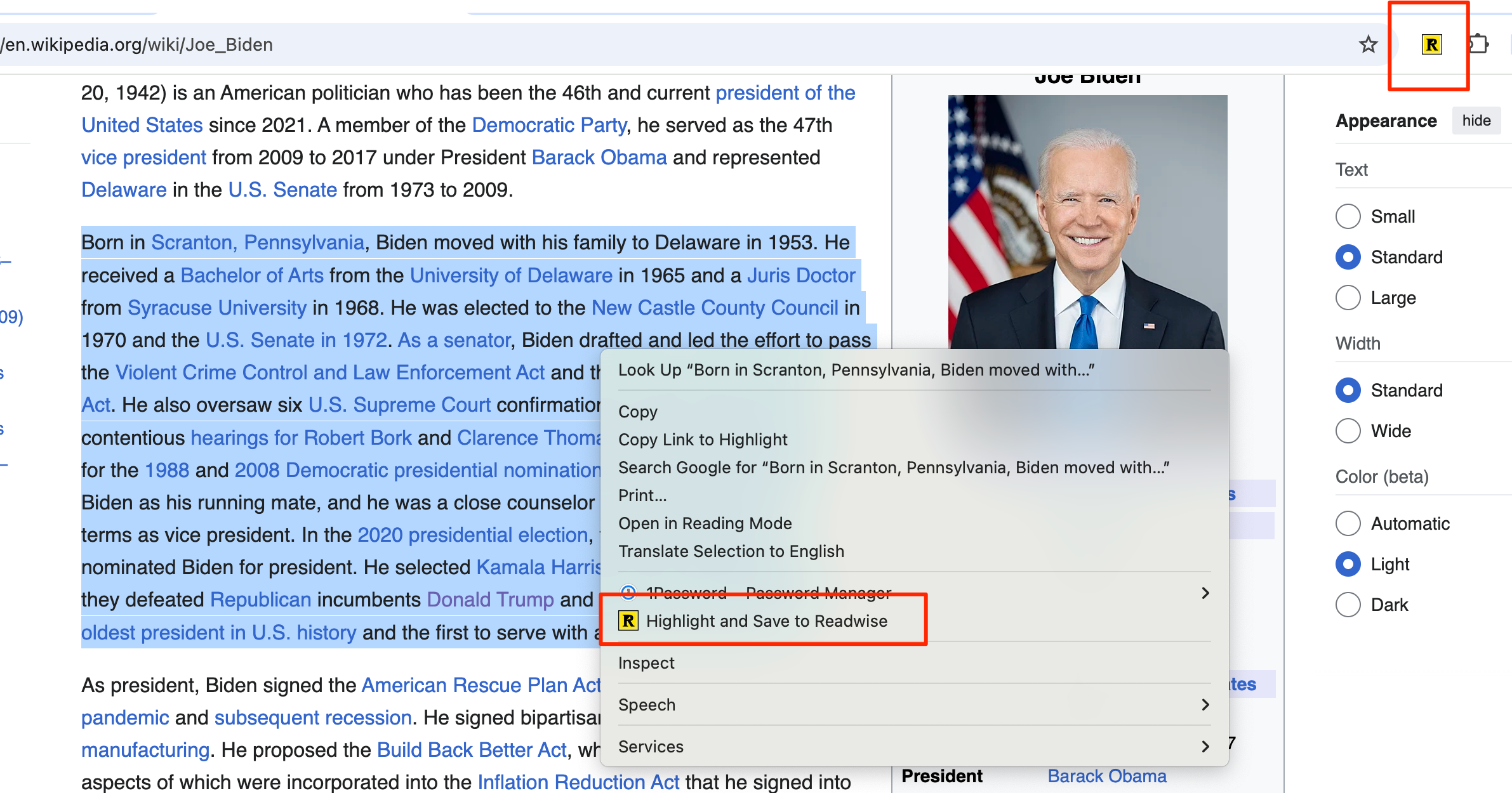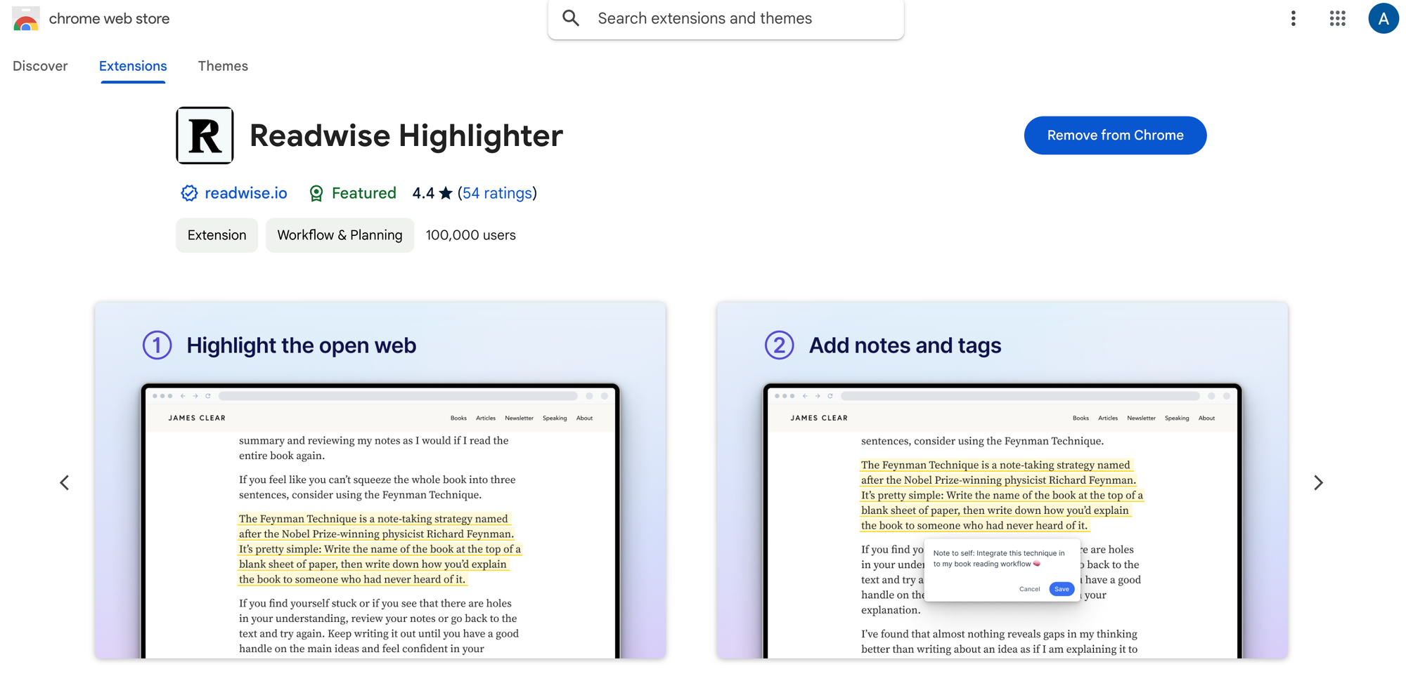 - Highlight and Save: Spot something valuable? Highlight it and save it with a click using the Readwise extension.