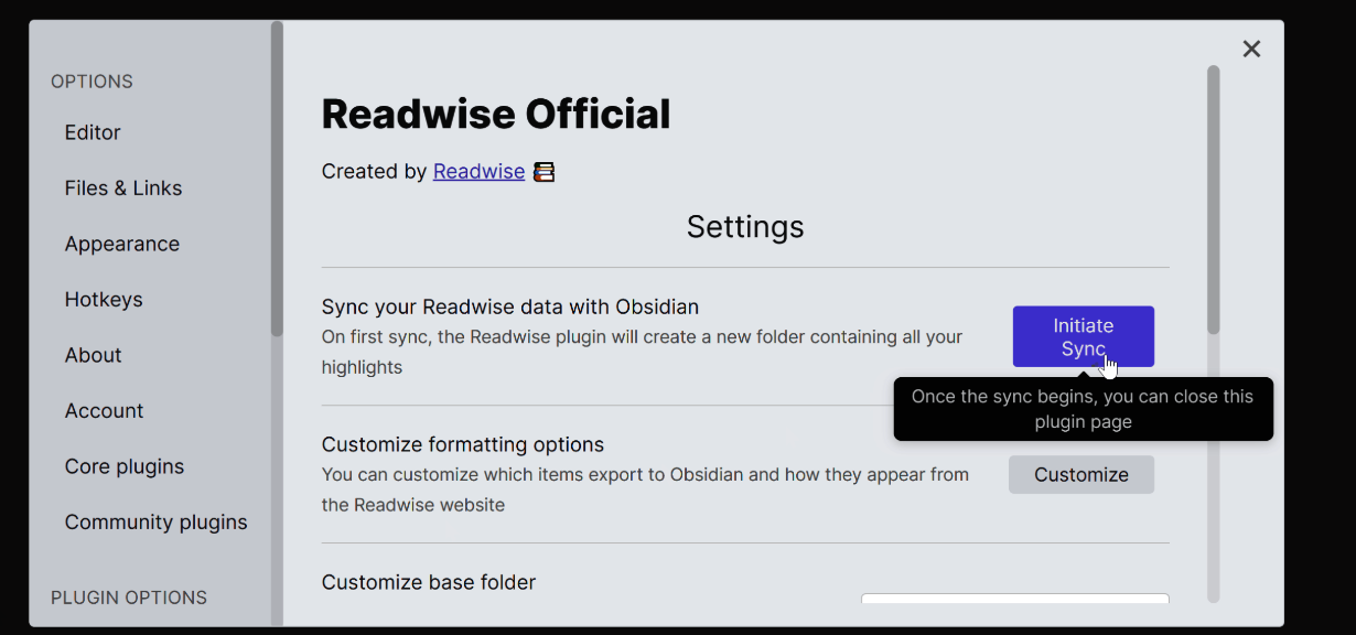 Now it's time to customize how Readwise and Obsidian work together to fit your style: