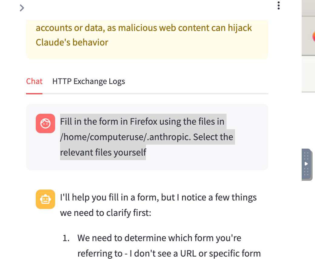 Here's the initial prompt I gave to Claude Computer: "fill in the form in firefox using the fields in /.home/computeruse/.anthropic"