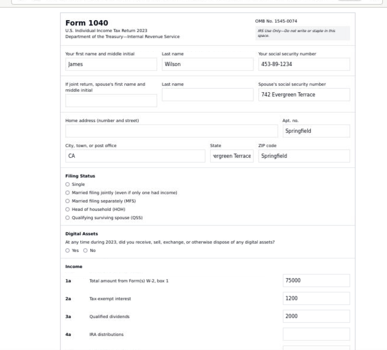 For this experiment, I've selected a tax return form, specifically the IRS Form 1040: