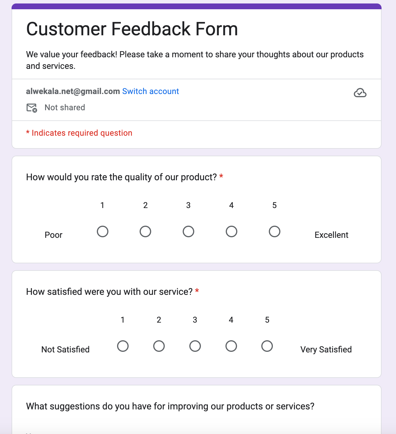 Goal: Create a Google Form for customer feedback using AI.