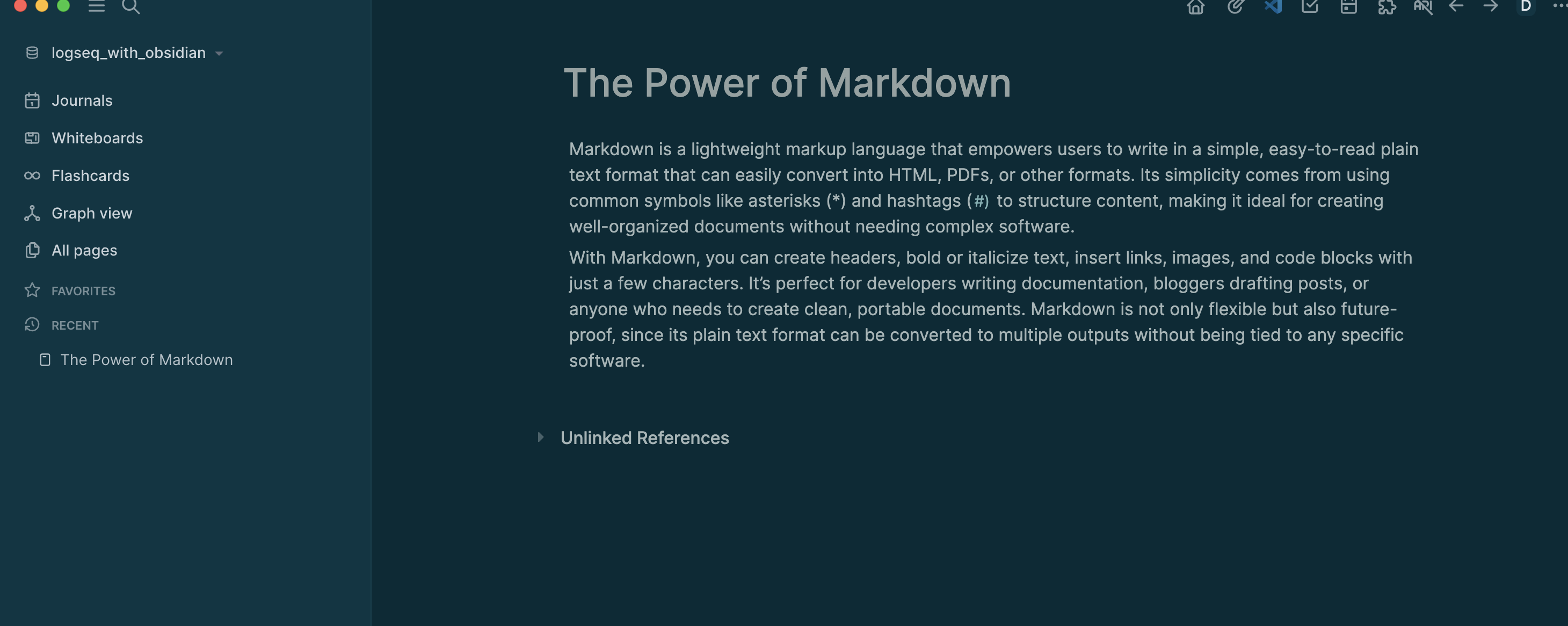 This same format makes compatibility across note-taking apps like Obsidian and Logseq possible because both rely simply on markdown.