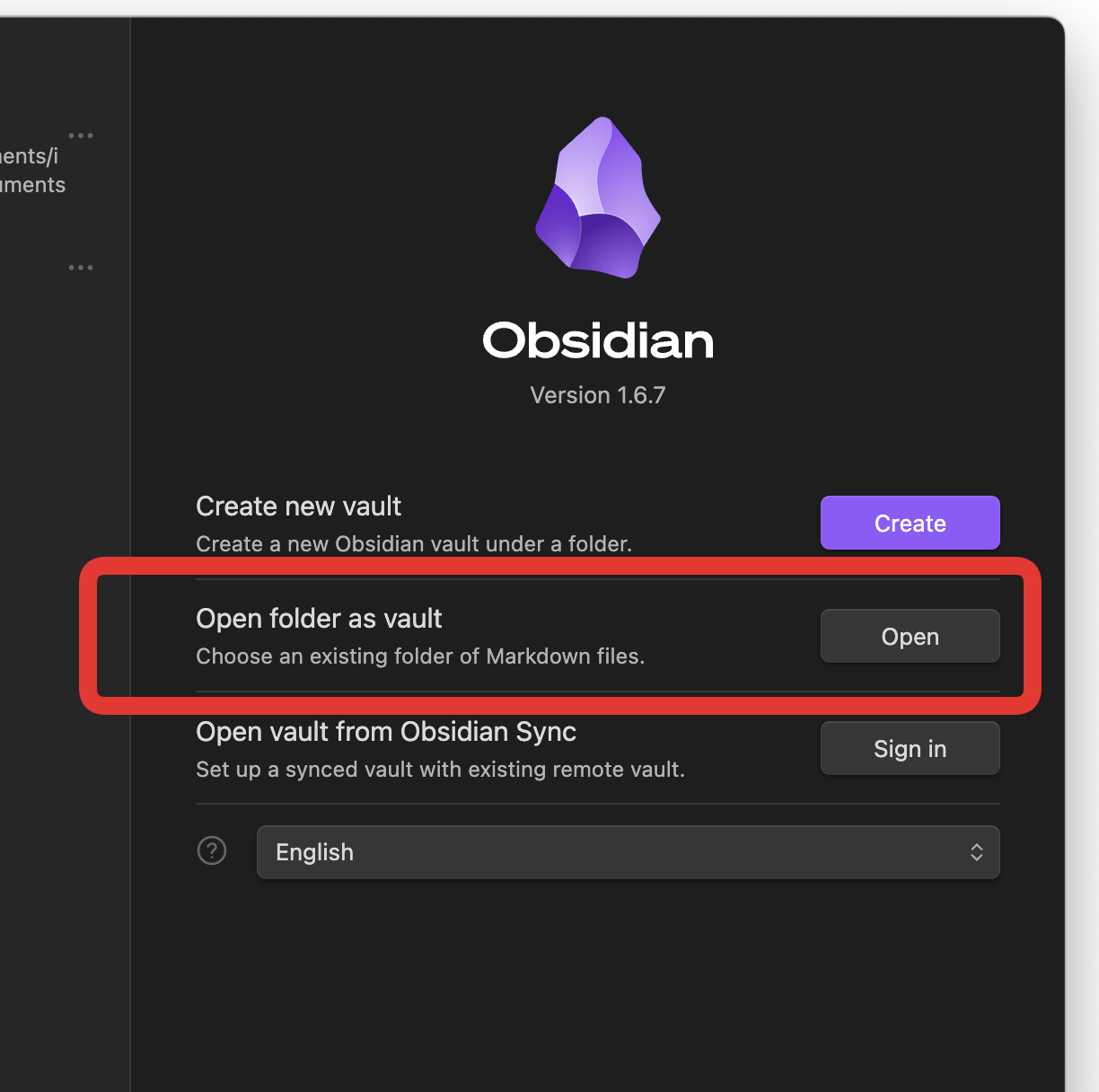 Now move to Obsidian and create a new vault.