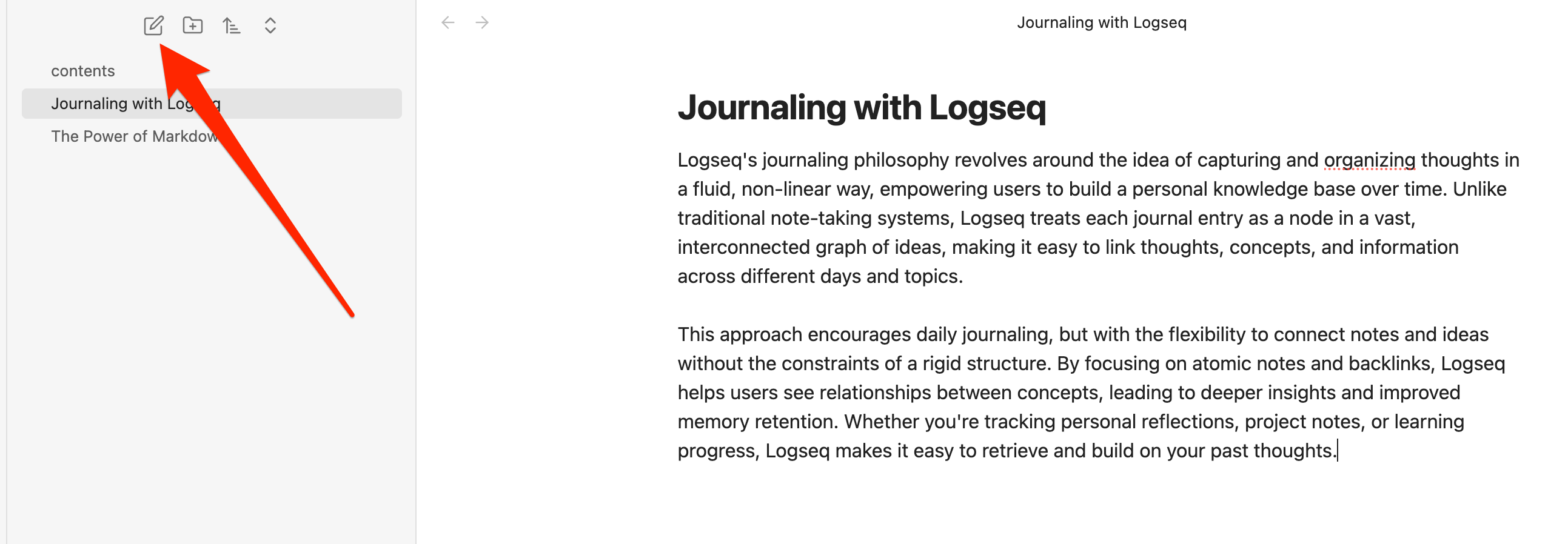 Now let's create a new page in Logseq with some content: