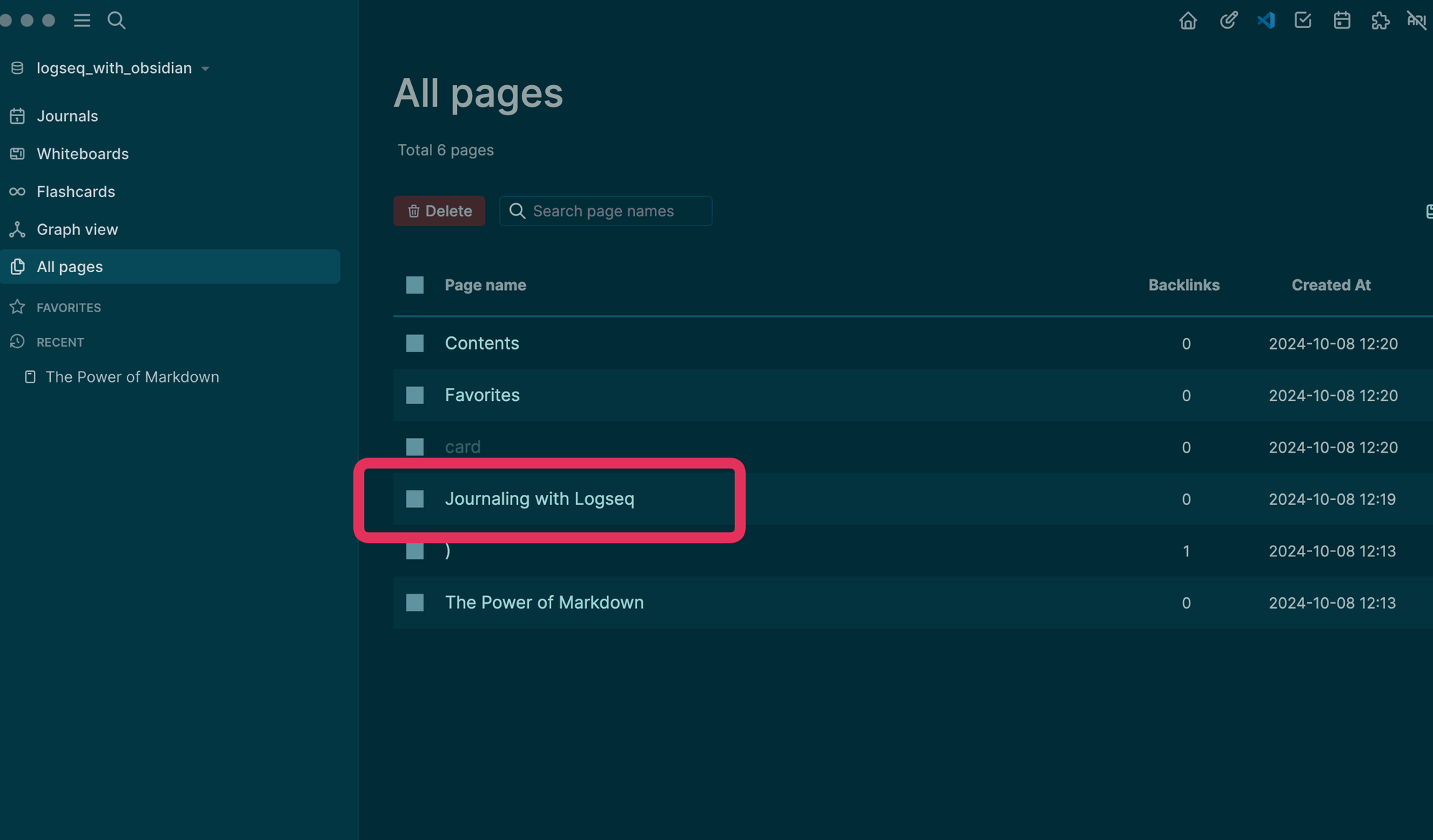 Now head back to Logseq, and if all goes well, you should be able to see this same page we just created in Obsidian.