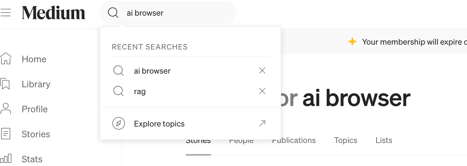 For example, imagine I want to find articles about "AI browsers" but need to exclude results related to "Manus" (which isn't actually an AI browser). On Medium, this is impossible. I am forced to wade through a cluttered list of results and manually filter out the noise.