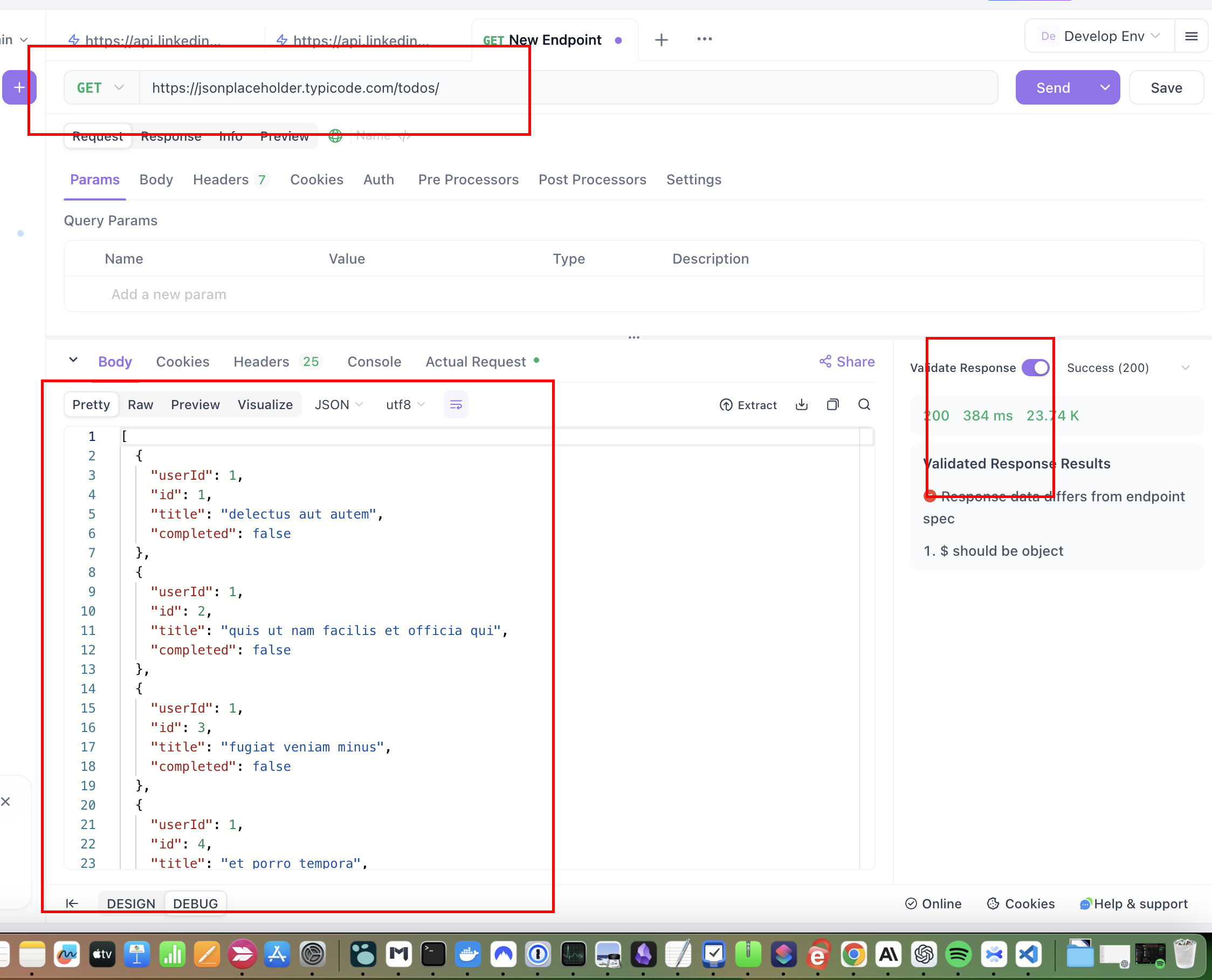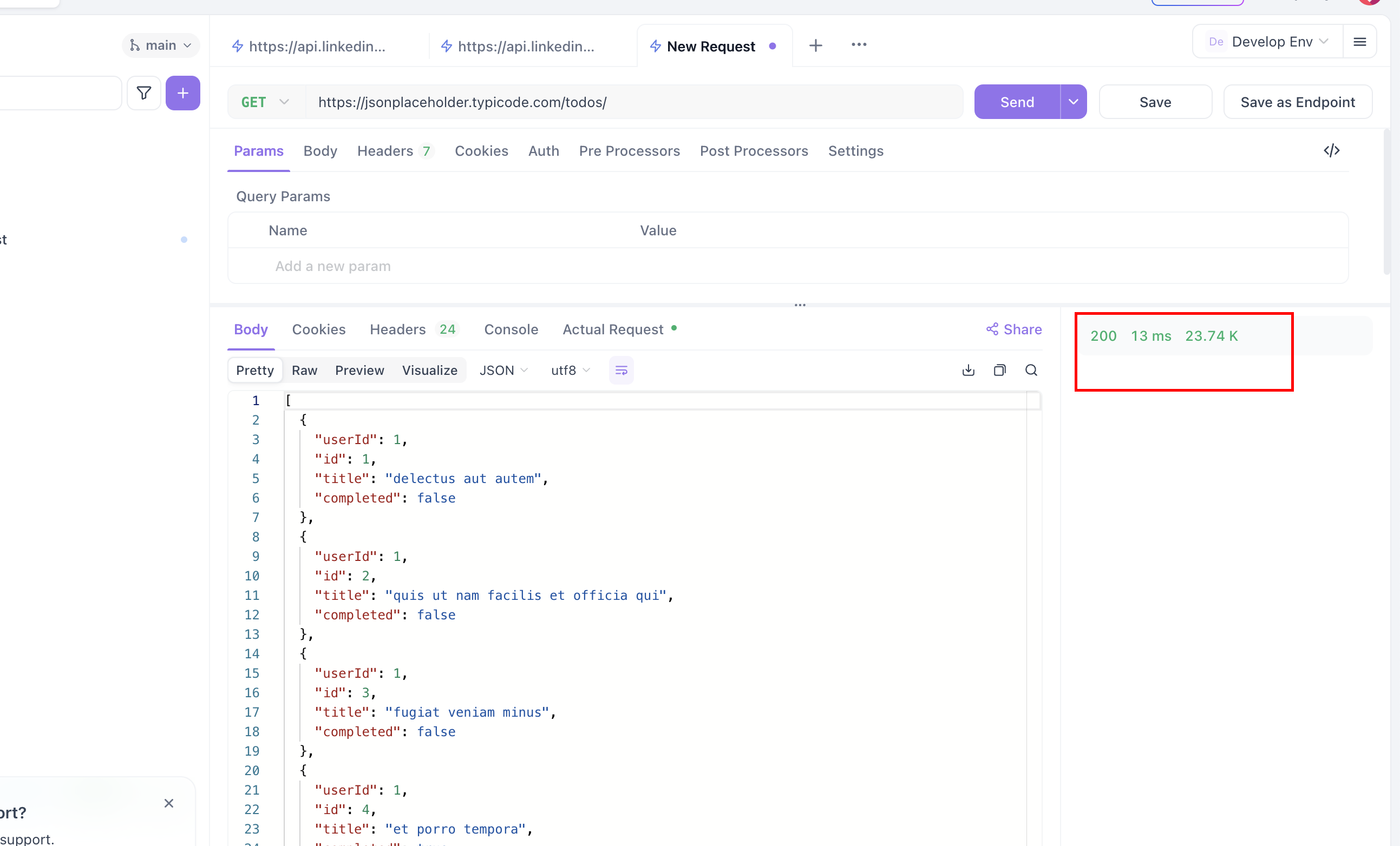 Observe that you receive a list of todos, and the request takes about 380ms. Note that real APIs may take longer and incur costs per request.