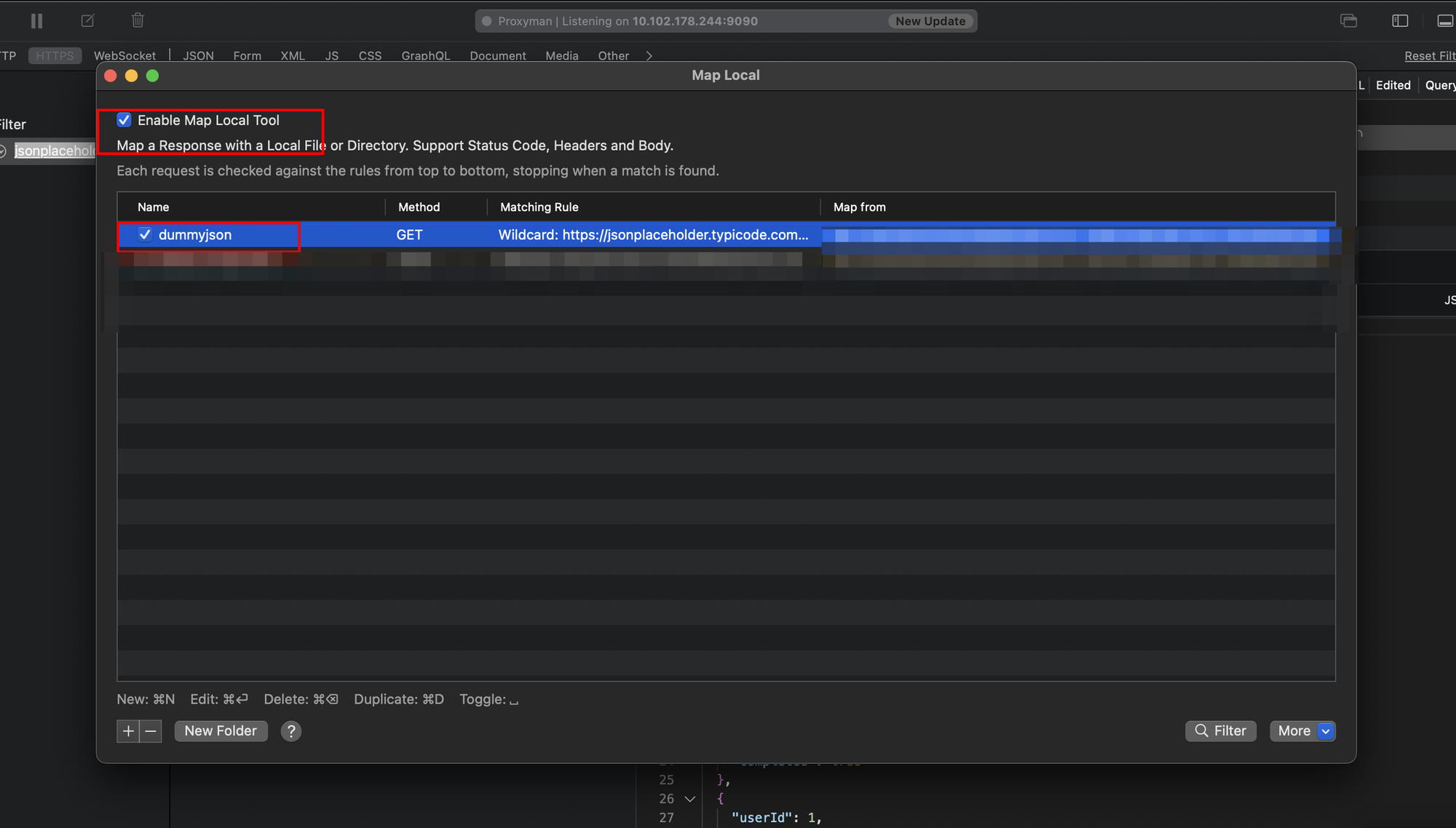 Check Proxyman Logs to confirm that the request is flagged as "edited," meaning it was intercepted and never reached the actual API.