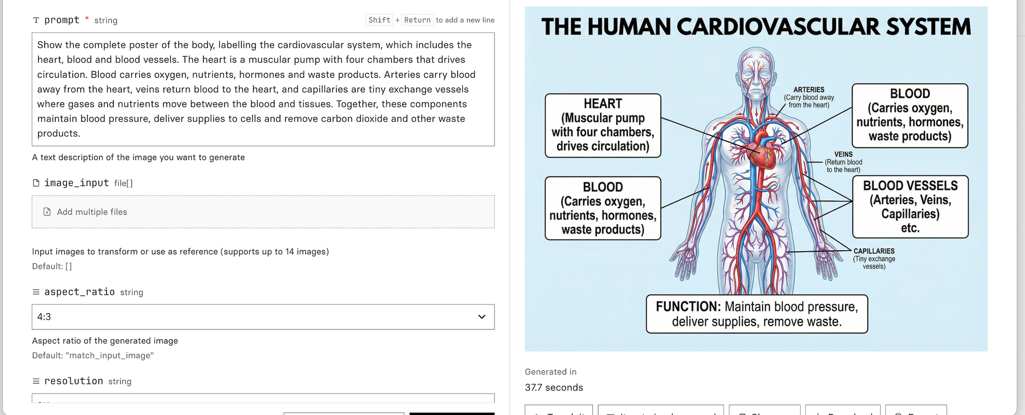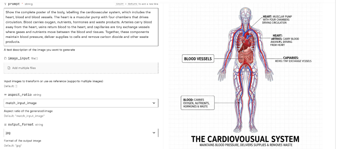 Here is one of many impressive results from Nano Banana Pro for that same challenging prompt (draw the cardiovascular system).