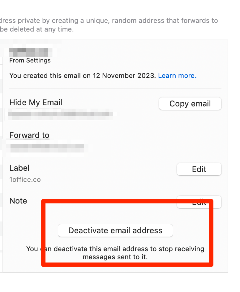 Apple's Hide My Email provides comparable address deactivation features. However, the process is slightly more involved, requiring navigation through your device or iCloud settings. Here are the key differences: