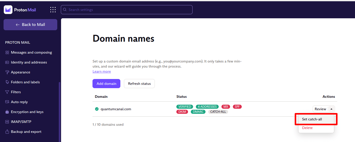 - Enable the catch-all option so you don’t need to individually register every address.