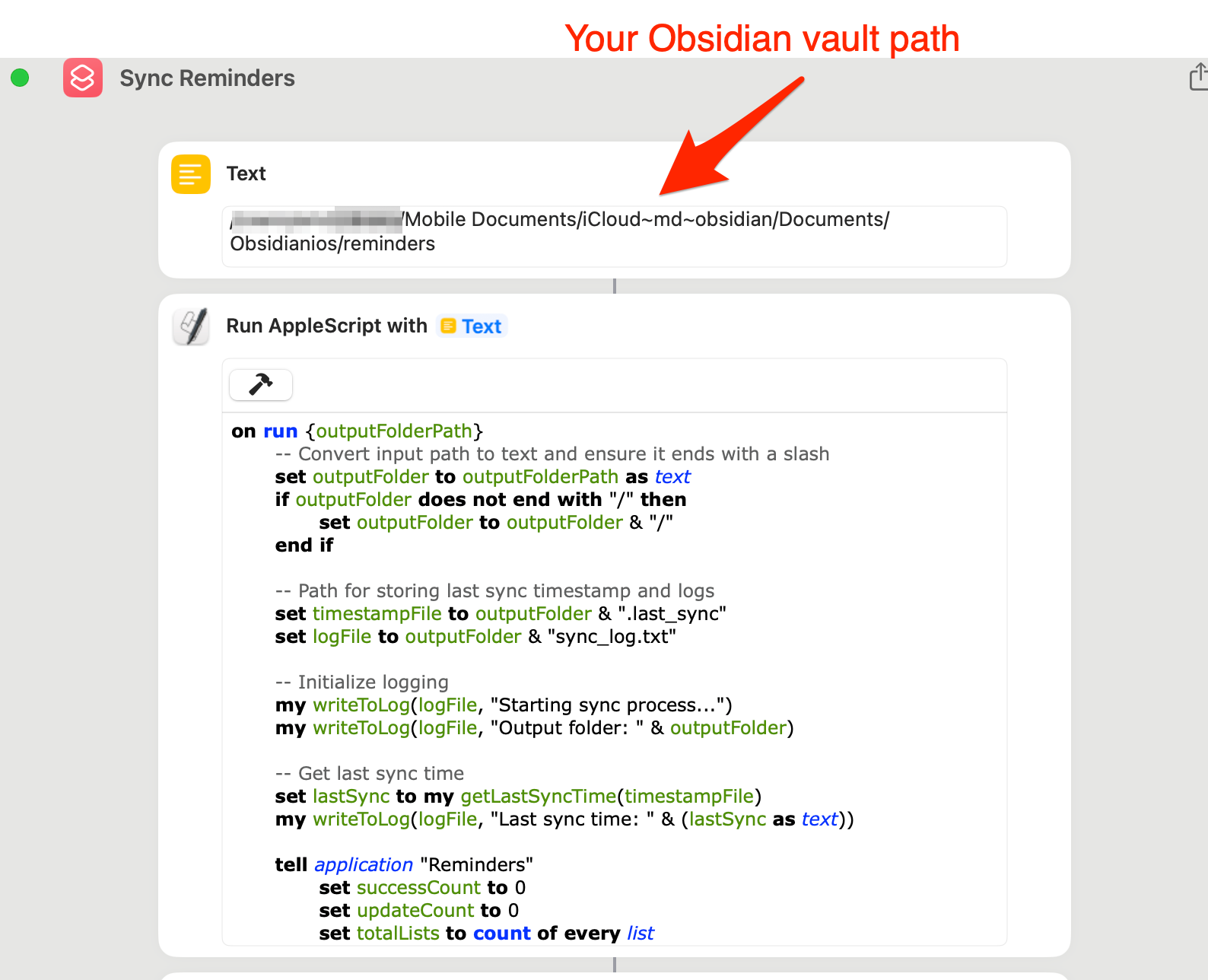 - Run the shortcut to synchronize your Reminders lists with Obsidian.