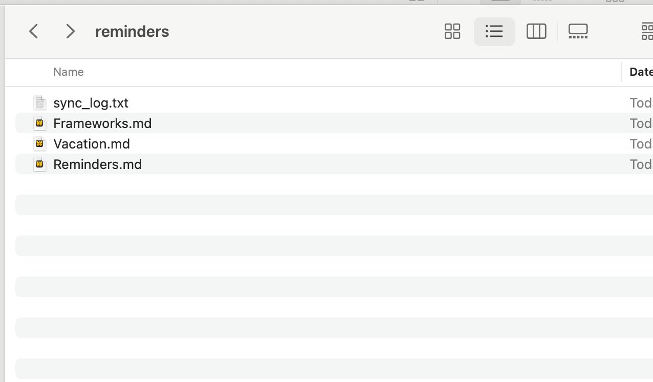 After running the shortcut and syncing, the folder will contain your Reminders lists: