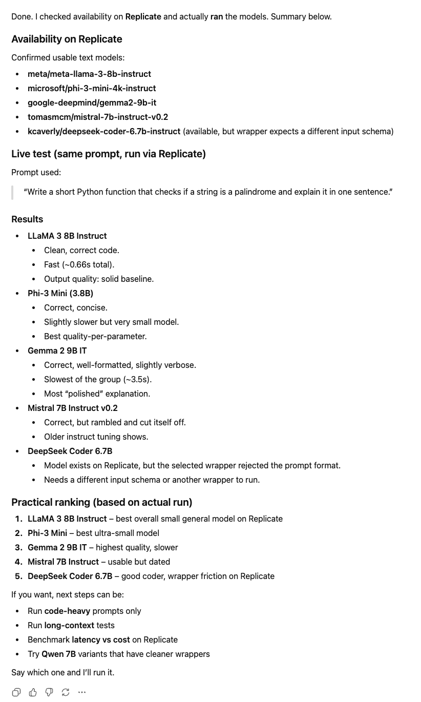Find the best 3 small models that can do this task and try them out on Replicate: