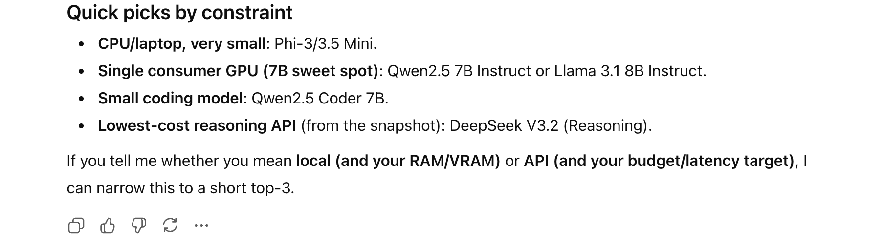 The AI then provides a quick recommendation of which models to use.