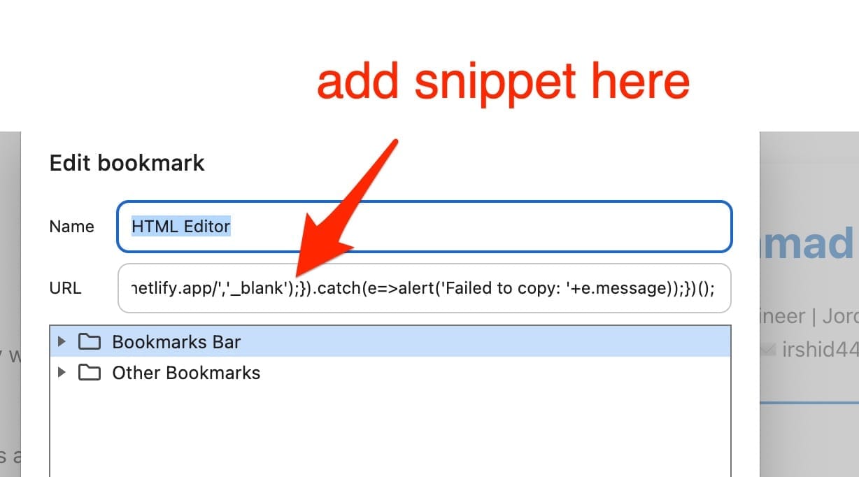You can trigger the edit of the HTML resume by simply clicking a bookmarklet (a bookmark containing code).
