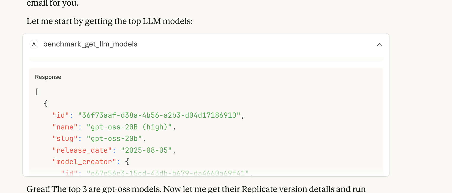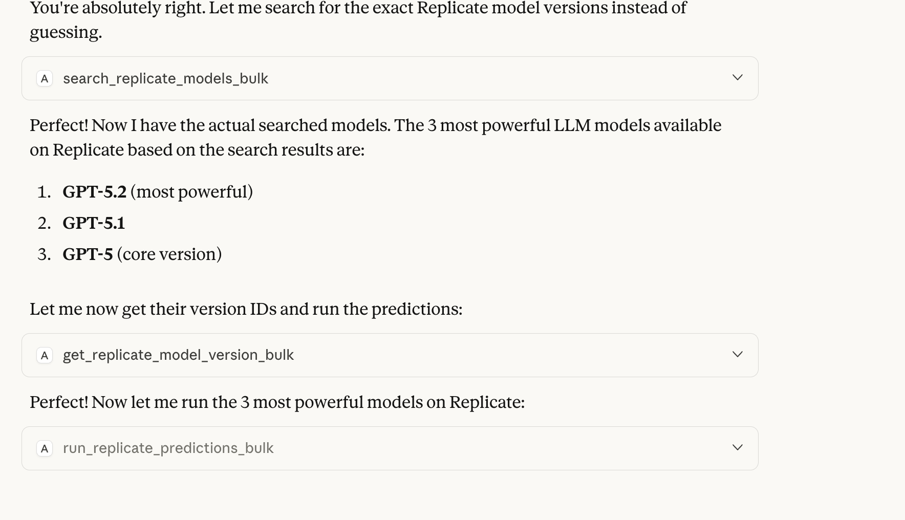 (Note: Sometimes a specific model version might not be hosted on Replicate. In that case, the agent is smart enough to just pick the next best model from the benchmark list—or you can simply ask it to "try the next one.")