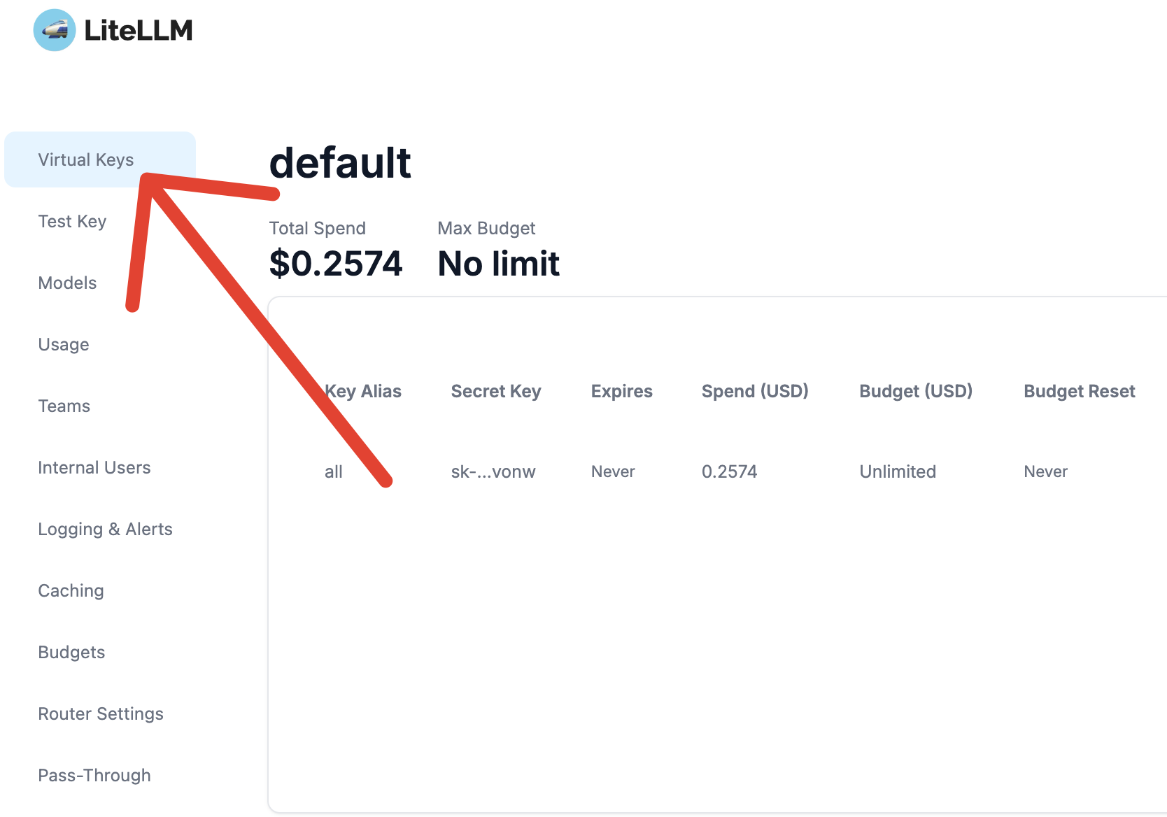 - Set up alerts, create virtual API keys, track usage, and set budgets.