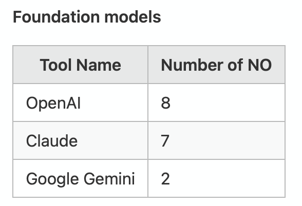 - We chose 16 of the most popular tools, including pure-play foundation models like Gemini, OpenAI, and Claude for the experiment.