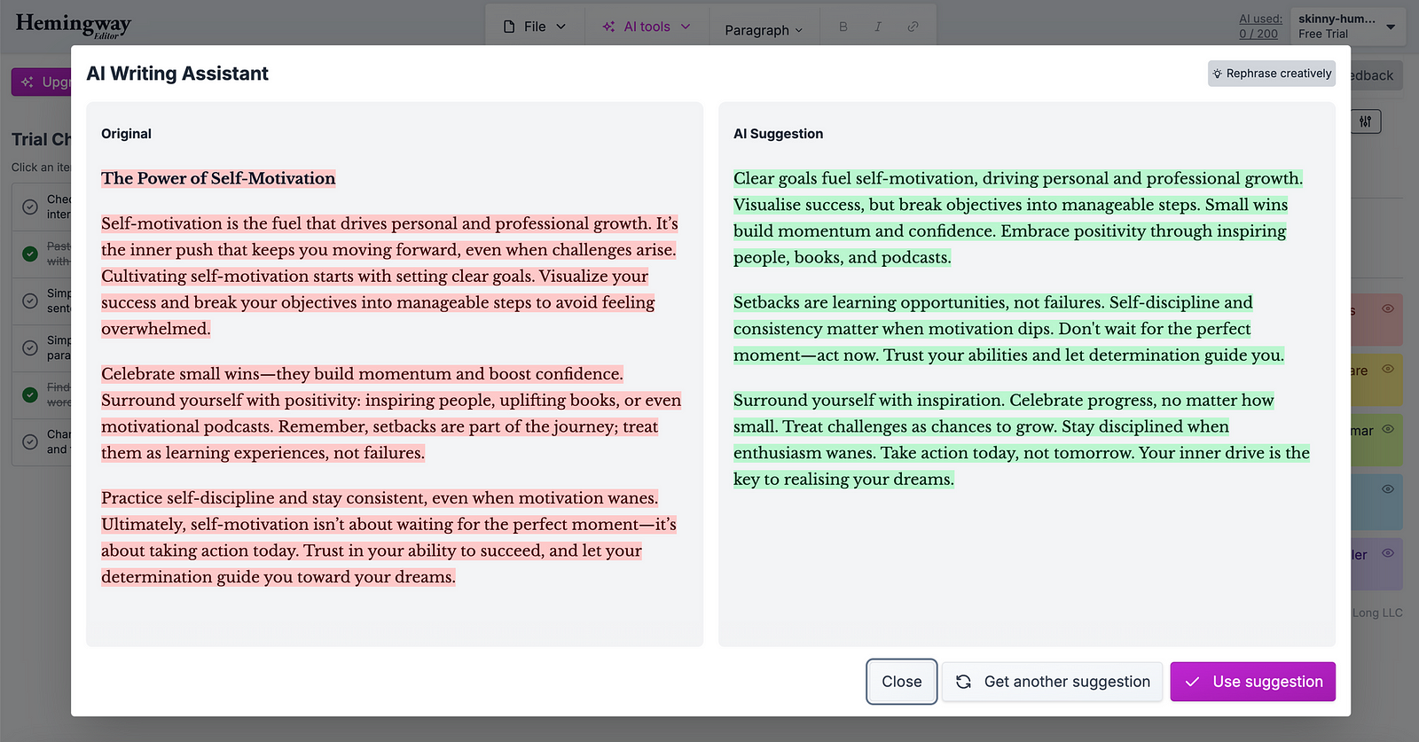Using the same original text about self-motivation, we applied 13 different rephrasing tools to see how effectively they could add a human touch. We then asked our nine participants to evaluate each rephrased text, indicating whether they believed it was written by a human or an AI, and to explain their reasoning.