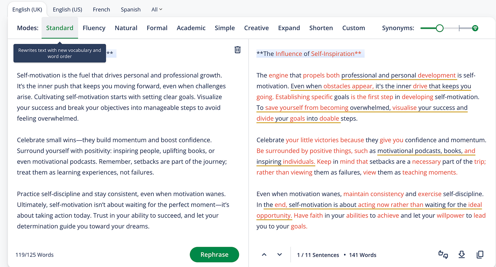 Let's dive into the results from these rephrasing services.