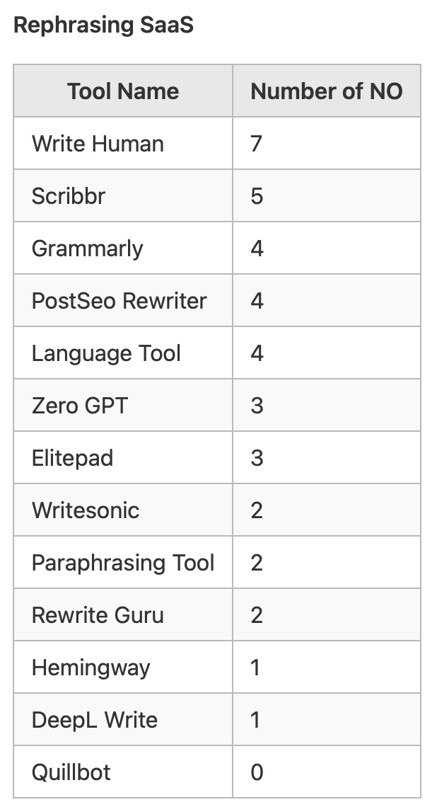We also observed that some rephrasing services were more effective than others in making AI-generated text feel authentic.