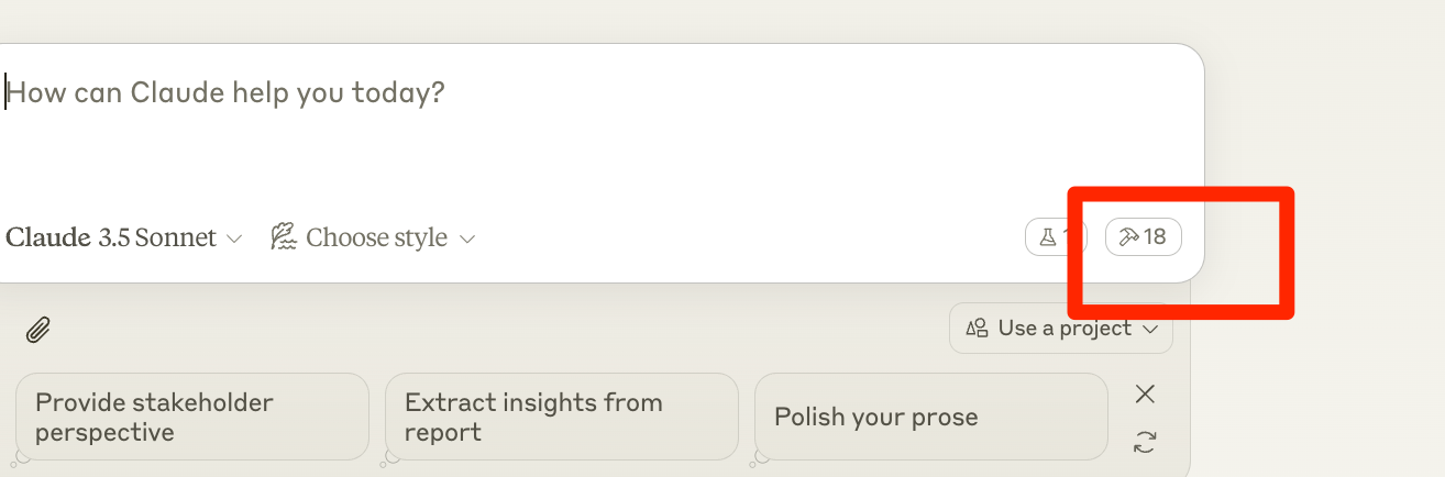 Now, clicking the icon in the lower-right corner of your chat window will display the list of currently loaded tools.